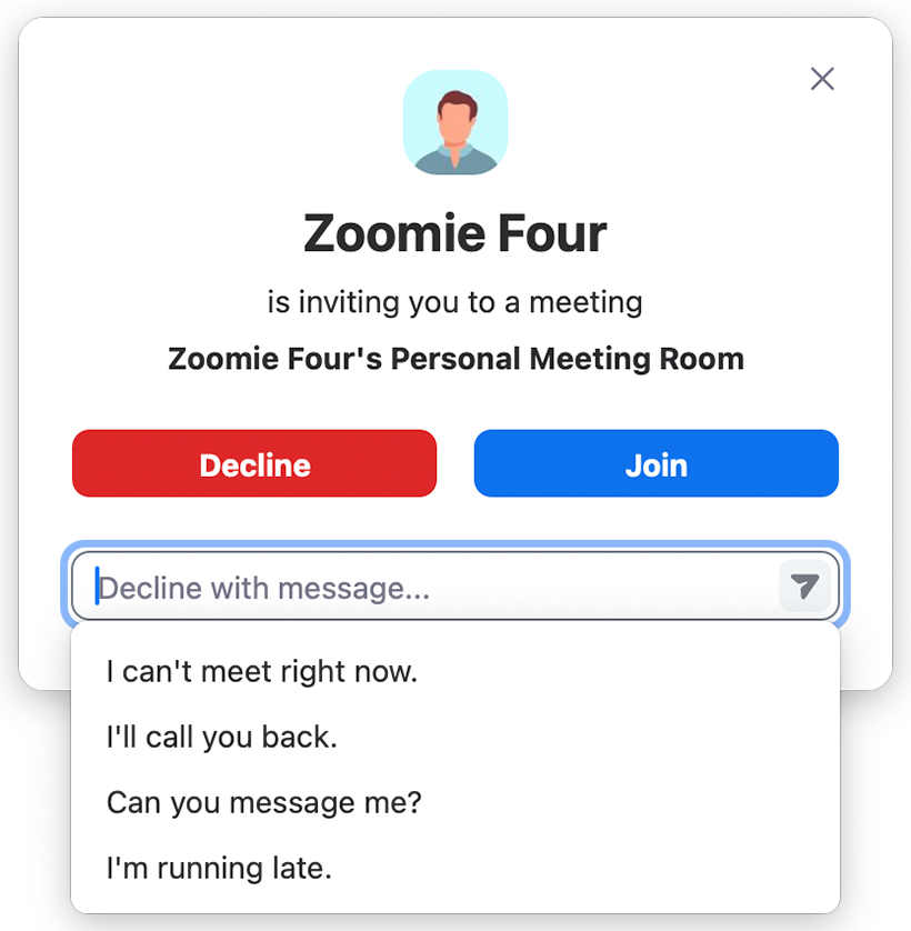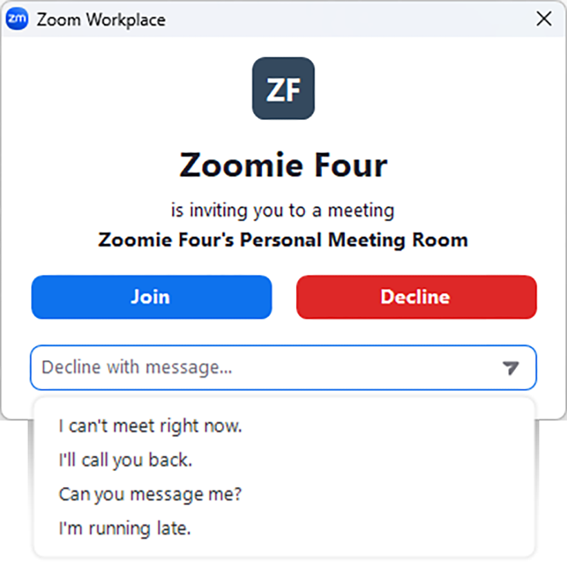 When you receive an ad-hoc meeting invitation, you can choose to decline the invitation with a message.