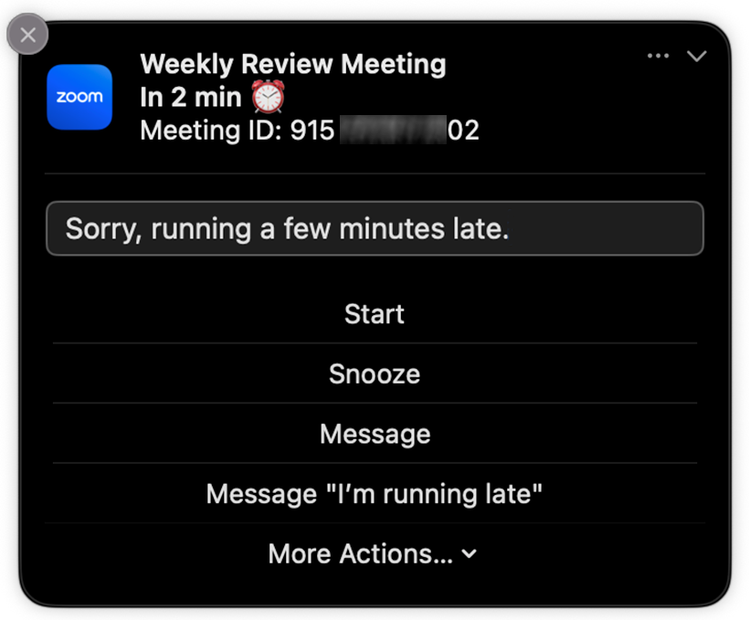 You can send a message directly from a meeting notification. This is useful when you want to let other meeting participants know you'll be late or cannot make the meeting.