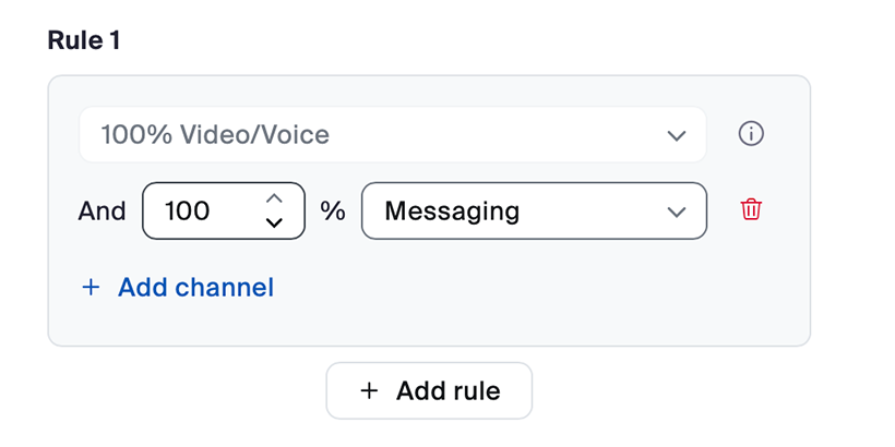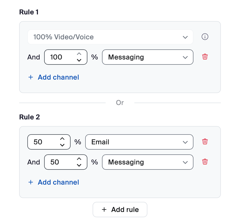 By configuring occupied rules, admins can create channel combinations that align with business needs and allow agents to handle messaging or email while on voice calls, or become occupied only when multiple channels reach specific thresholds.