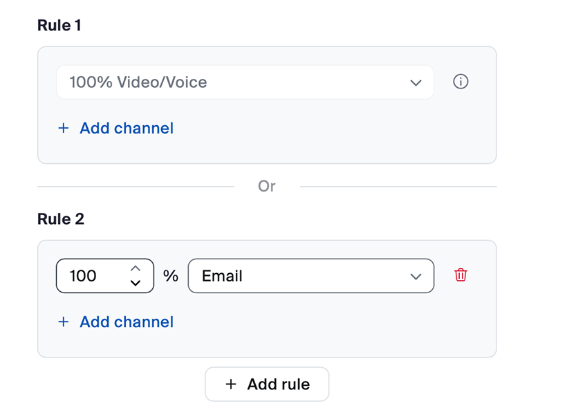 - Within Rule 1, click Add channel to include another channel to the same rule (for example, Messaging).