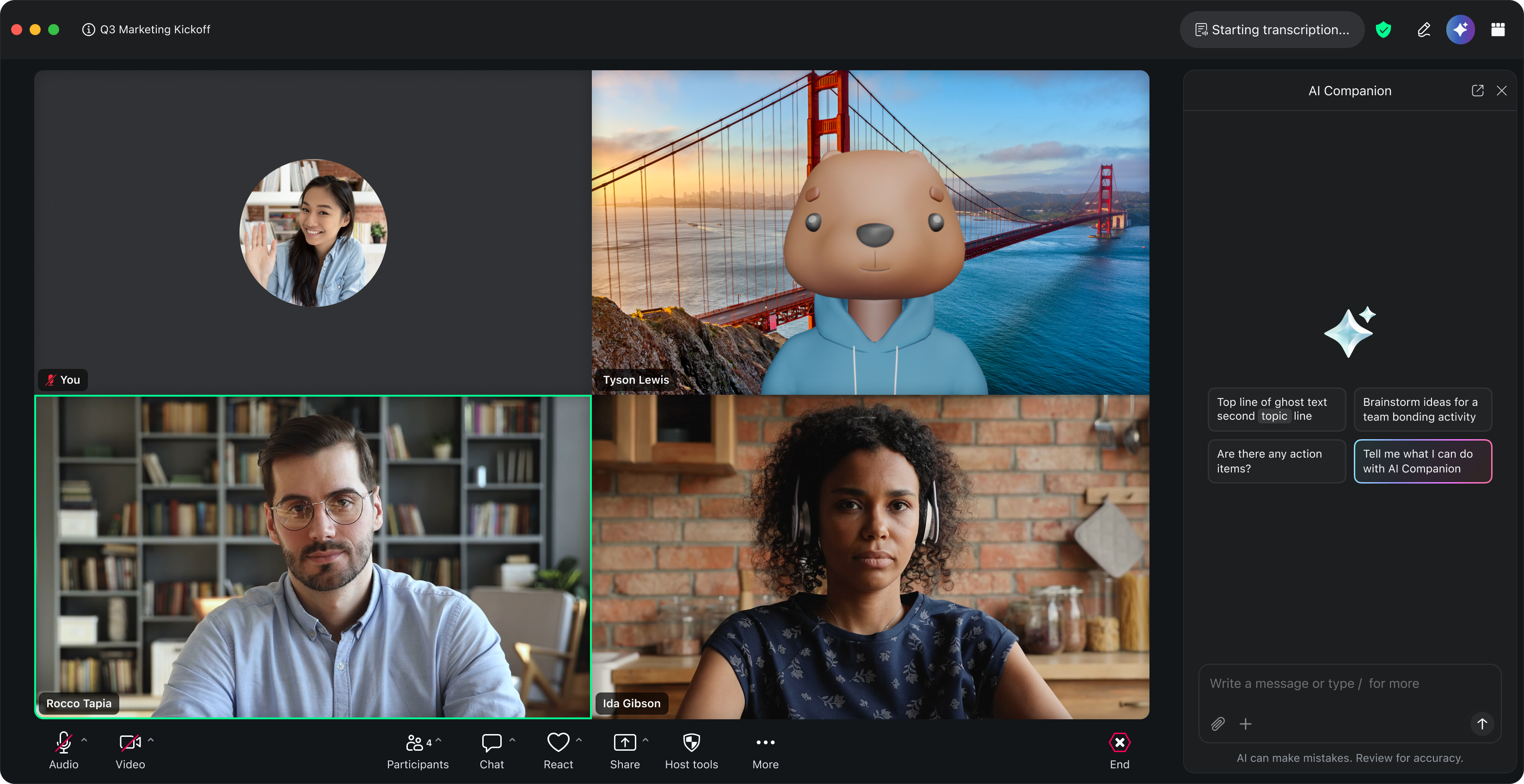 Start Meeting questions with the AI Companion as the host